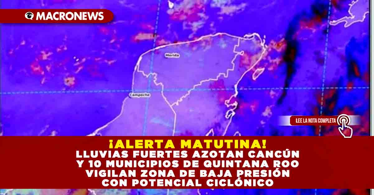 ¡ALERTA MATUTINA! LLUVIAS FUERTES AZOTAN CANCÚN Y 10 MUNICIPIOS DE QUINTANA ROO VIGILAN ZONA DE BAJA PRESIÓN CON POTENCIAL CICLÓNICO