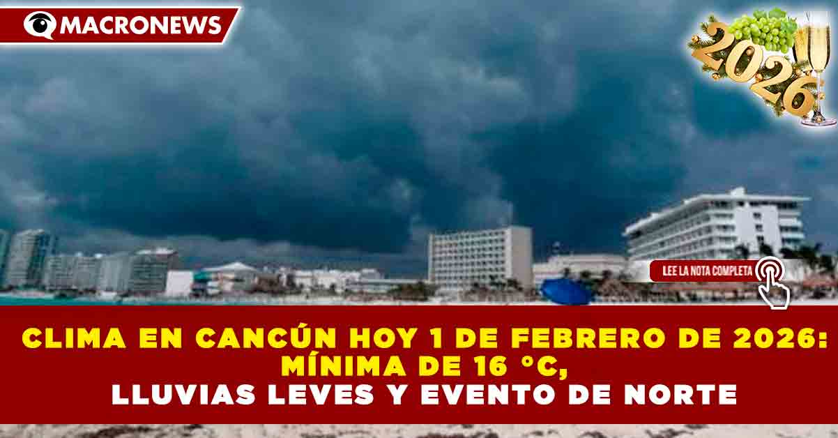 CLIMA EN CANCÚN HOY 1 DE FEBRERO DE 2026: MÍNIMA DE 16 °C, LLUVIAS LEVES Y EVENTO DE NORTE