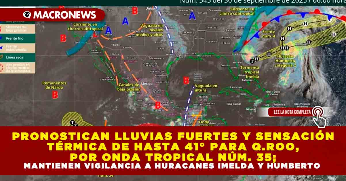- Lluvias fuertes y sensación térmica de hasta 41 °C en Quintana Roo; huracanes Imelda y Humberto no representan riesgo para México