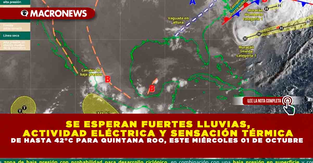 - Lluvias fuertes y sensación térmica de hasta 42 °C en Quintana Roo este 1 de octubre; 11 municipios bajo alerta por actividad eléctrica