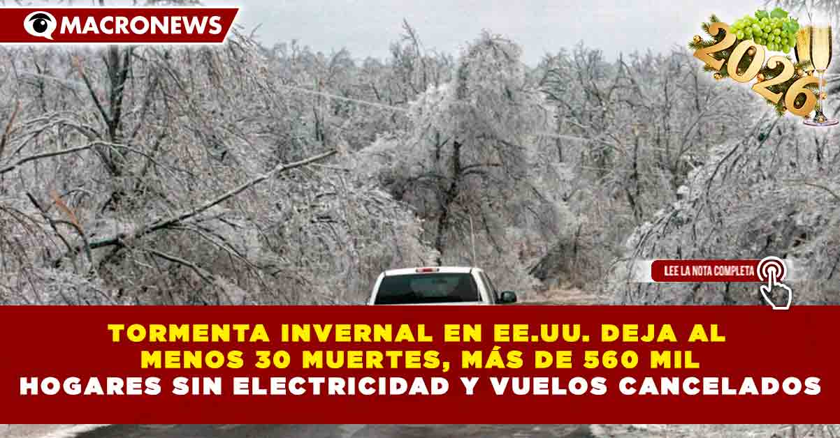 Redacción Macronews.- Una colosal tormenta invernal azotó este lunes el noreste y sur de EE.UU., provocando más de 30 muertes, extensos apagones eléctricos y la cancelación de miles de vuelos, según reportes de medios y autoridades locales.