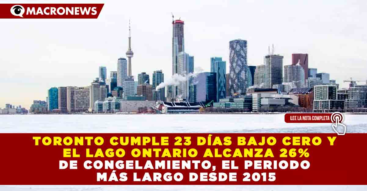 Redacción Macronews.- La ciudad de Toronto, la más poblada de Canadá, entró este lunes en su vigésimo tercer día consecutivo con temperaturas por debajo de los cero grados centígrados, el periodo de frío continuo más prolongado desde 2015, situación que ha provocado que aproximadamente una cuarta parte del lago Ontario se encuentre totalmente congelada.