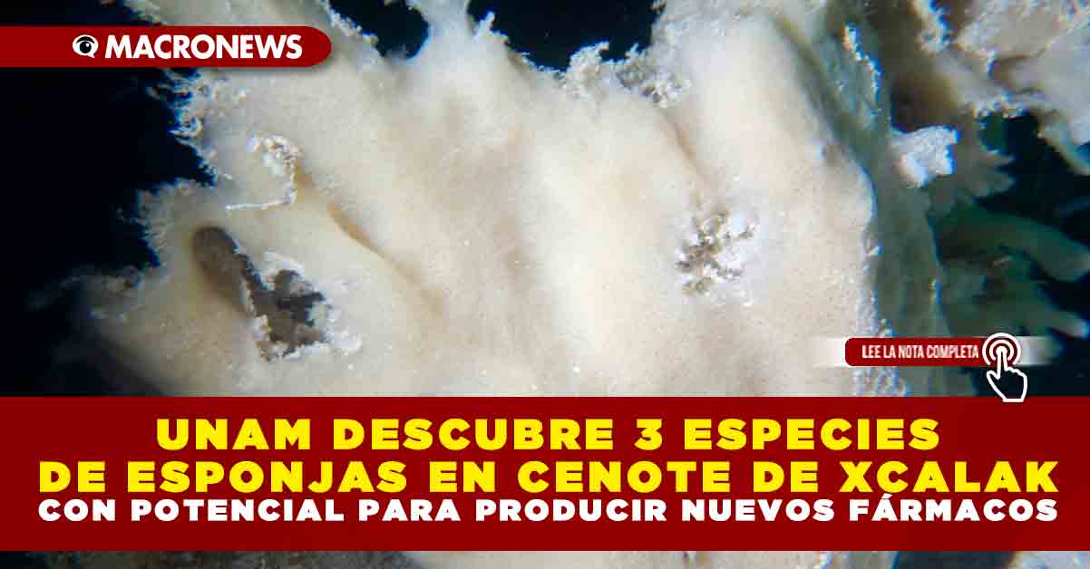 - UNAM descubre 3 especies de esponjas en cenote de Xcalak con potencial para producir nuevos fármacos