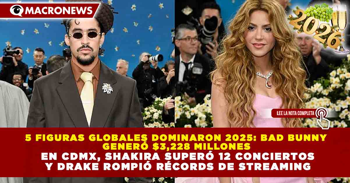 Redacción Macronews.- El 2025 quedó marcado por presentaciones históricas, récords de audiencia y coronaciones internacionales, con figuras como Bad Bunny, Fátima Bosch, Shakira, Taylor Swift y Drake encabezando la lista de los famosos que la rompieron este año, con una fuerte presencia en México y un impacto global medible en millones de asistentes y reproducciones.