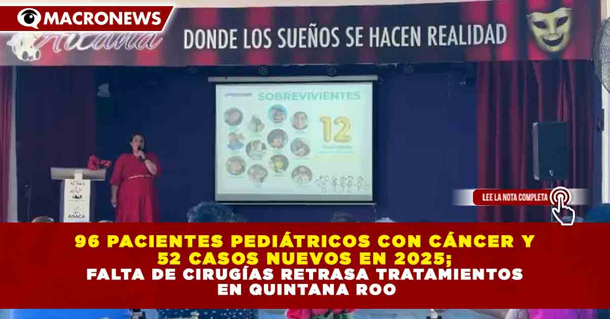 Redacción Macronews.- La falta de disponibilidad de cirugías se ha convertido en uno de los principales retos para la atención de niños con cáncer en Quintana Roo, donde al menos 96 pacientes pediátricos fueron atendidos en 2025, de los cuales 52 corresponden a nuevos diagnósticos.