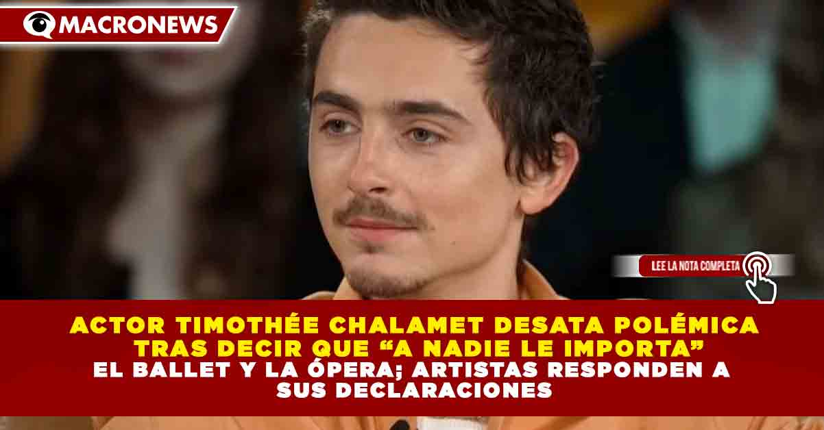 Redacción Macronews.- El actor estadounidense Timothée Chalamet, de 30 años, generó una fuerte polémica en el mundo artístico luego de afirmar durante una conversación pública que “a nadie le importa” el ballet o la ópera, comentarios que provocaron una ola de críticas por parte de cantantes, coreógrafos y figuras del ámbito cultural.