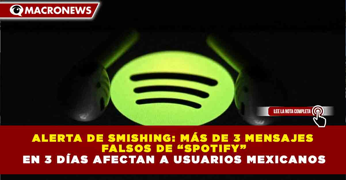 Redacción Macronews.- Usuarios mexicanos han recibido más de 3 mensajes de texto fraudulentos en apenas tres días, en los que los remitentes se hacen pasar por Spotify para engañar a los usuarios y obtener información personal a través de links sospechosos, una modalidad conocida como smishing.