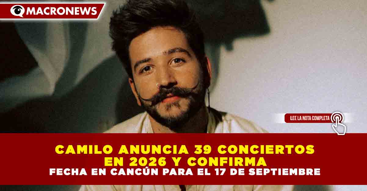Redacción Macronews.- El cantante colombiano Camilo anunció su Camilo Worldwide Tour 2026, una gira internacional que contempla 39 conciertos en más de 15 países, incluyendo una esperada presentación en Cancún el próximo 17 de septiembre.
