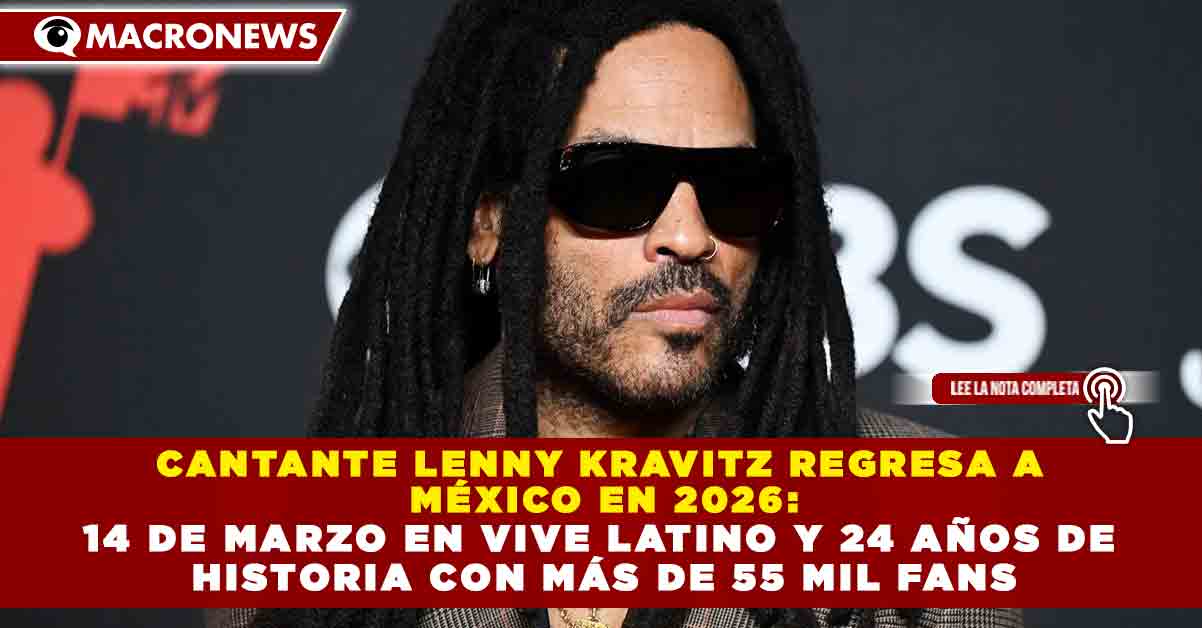 Redacción Macronews.- Lenny Kravitz confirmó su regreso a México para presentarse el próximo 14 de marzo de 2026 en el Festival Vive Latino, escenario que marcará un nuevo capítulo en su estrecha relación con el público mexicano, la cual inició hace 24 años con un concierto multitudinario que reunió a más de 55 mil personas en el Estadio Azteca.