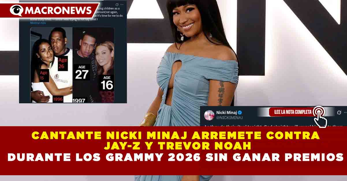 Redacción Macronews.- La rapera Nicki Minaj protagonizó una fuerte polémica durante la edición de los Premios Grammy 2026, luego de lanzar duras críticas contra Jay-Z y el presentador Trevor Noah, en una ceremonia en la que no obtuvo ningún galardón, pese a contar con nominaciones relevantes.