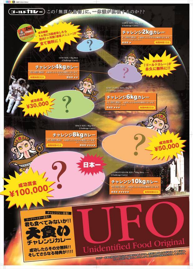 Si crees que si puedes, pero no te quieres arriesgar a los 10 kilos, existe un reto donde tienes que comer 6 kilos de arroz al curry; si lo logras, no tendrás que pagar los 45 dólares que cuesta tal platillo, y recibirás a cambio 270 dólares por parte del restaurante. ¿La condición? Comerlo en 30 minutos.