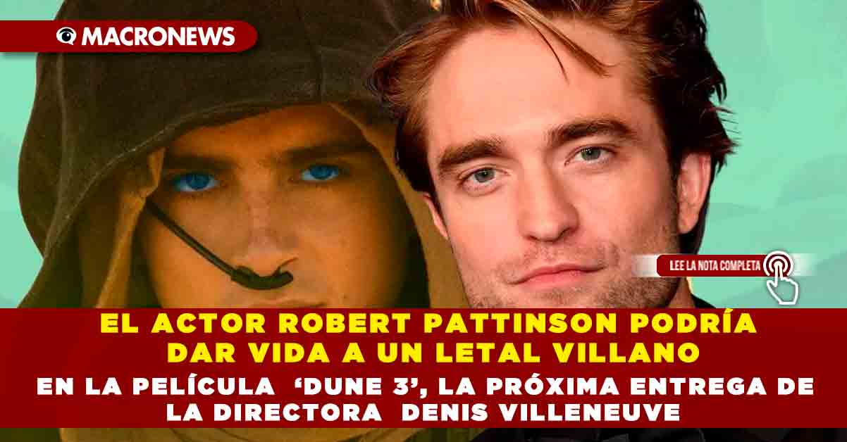 EL ACTOR ROBERT PATTINSON PODRÍA DAR VIDA A UN LETAL VILLANO EN LA PELÍCULA  ‘DUNE 3’, LA PRÓXIMA ENTREGA DE LA DIRECTORA  DENIS VILLENEUVE