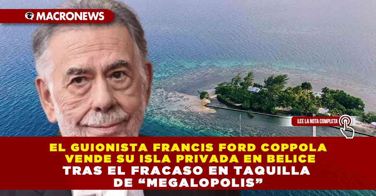 El director Francisco Ford Coppola, realizador de la saga “The Godfather”, vendió su isla privada en Belice en US$ 1,8 millones luego del fracaso en taquilla de su película “Megalopolis”, de 2024, según reportes.