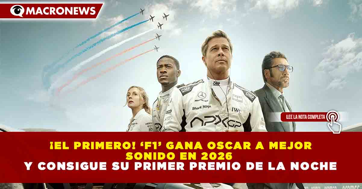 Redacción Macronews.- La película F1 obtuvo el premio a Mejor Sonido durante la ceremonia de los Premios Óscar 2026, logrando así su primera estatuilla de la noche dentro de las categorías técnicas de la premiación.