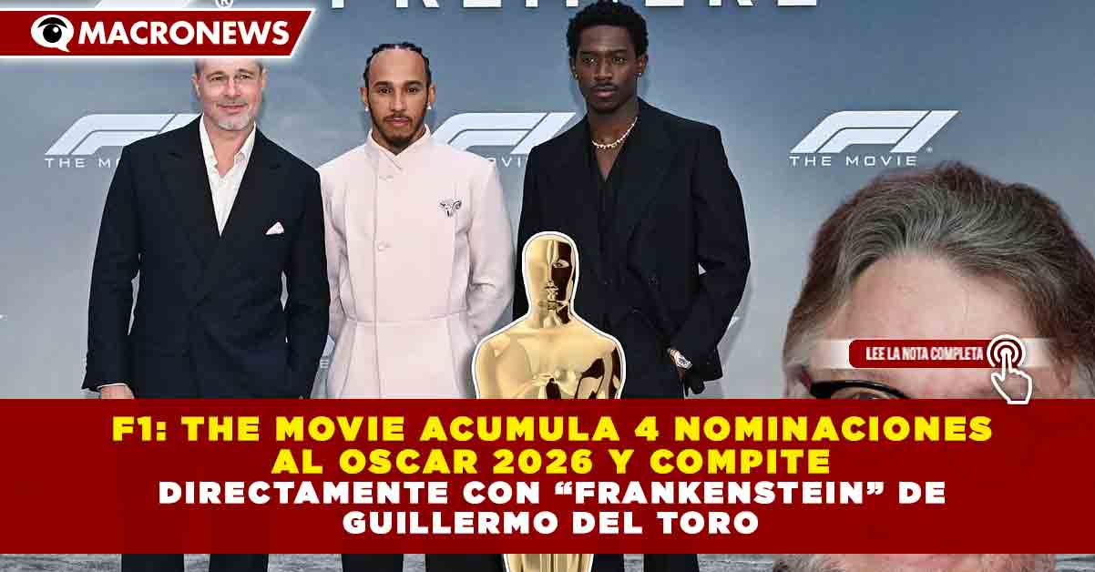Redacción Macronews.- F1: The Movie, producción de Apple protagonizada por Brad Pitt, se colocó entre las cintas más destacadas rumbo a los Premios Oscar 2026, al obtener cuatro nominaciones, convirtiéndose en una de las principales contendientes y marcando una competencia directa con Frankenstein, del cineasta mexicano Guillermo del Toro.