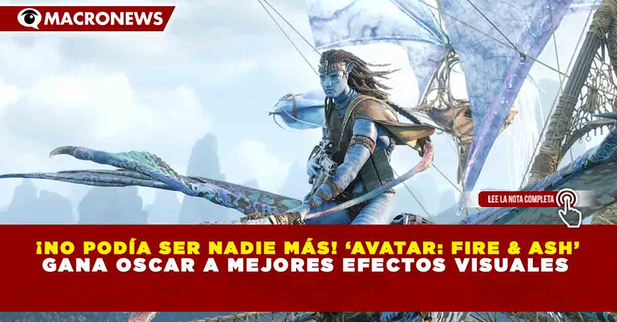 Redacción Macronews.- La esperada producción Avatar: Fire & Ash se llevó el premio a Mejores Efectos Visuales durante la ceremonia de los Premios Óscar 2026, consolidando una vez más el dominio de la franquicia en una de las categorías técnicas más importantes de la industria cinematográfica.
