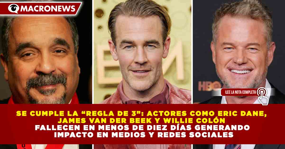 Redacción Macronews.- En menos de diez días, el mundo del espectáculo y la música lamenta la pérdida de tres figuras emblemáticas: Eric Dane (53 años), James Van Der Beek (48) y Willie Colón (75), quienes dejaron un legado imborrable en la televisión y la música latina.