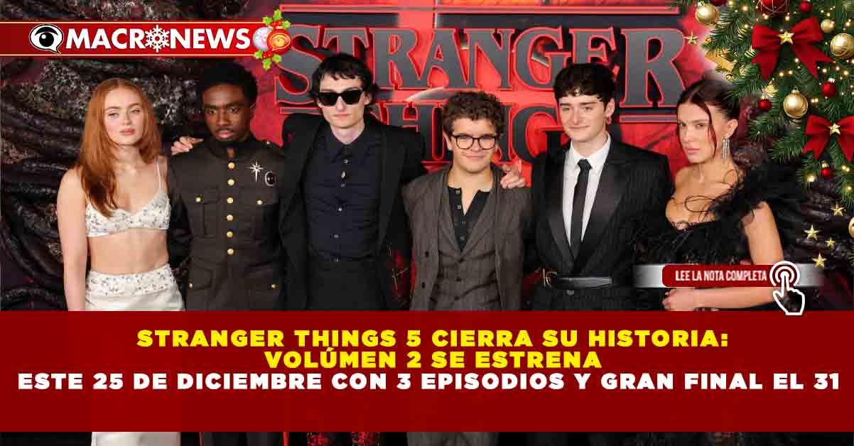 Redacción Macronews.- La quinta y última temporada de “Stranger Things”, una de las series más exitosas de Netflix, entra en su recta final con el estreno del Volumen 2 este jueves 25 de diciembre a las 19:00 horas (tiempo del centro de México), el cual estará compuesto por tres nuevos episodios que profundizarán en el enfrentamiento definitivo contra la amenaza del Upside Down.