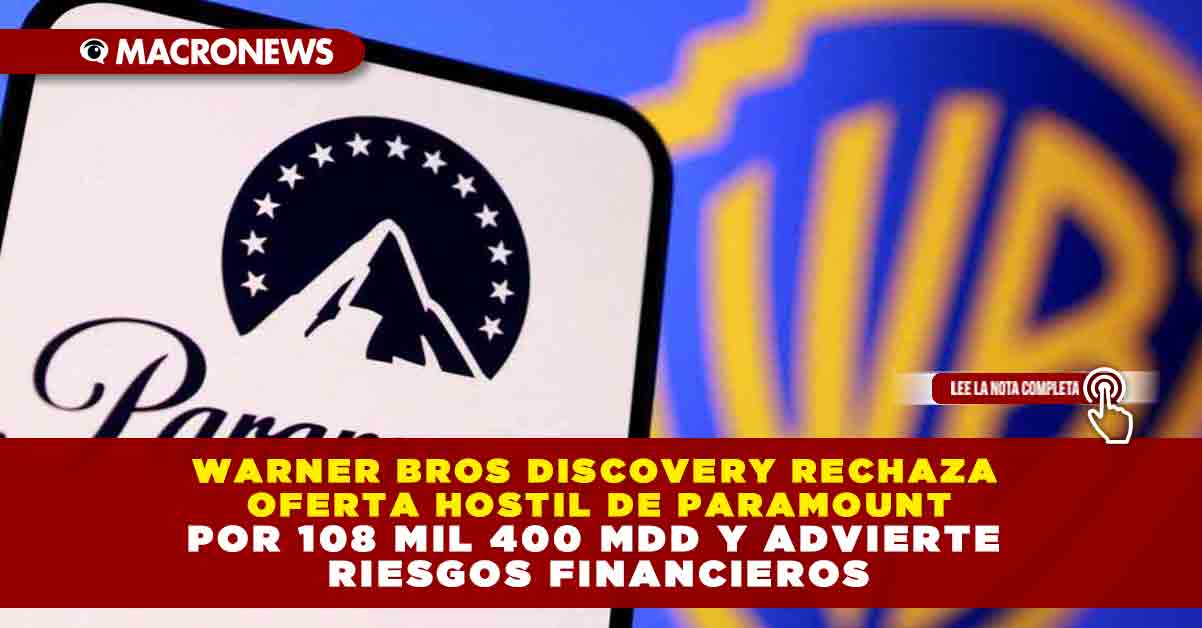 Redacción Macronews.- El directorio de Warner Bros Discovery (WBD) rechazó de manera oficial la oferta hostil presentada por Paramount Skydance, valuada en 108 mil 400 millones de dólares, al considerar que no cuenta con garantías suficientes de financiamiento y representa riesgos significativos para los accionistas, de acuerdo con una carta enviada a inversionistas y presentada en un documento regulatorio.