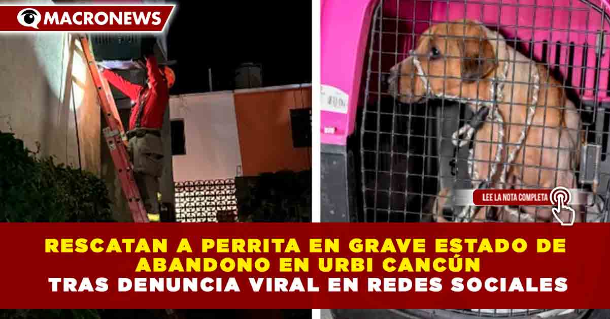 Redacción Macronews.- rescataron a una canina que se encontraba en grave situación de abandono dentro de un departamento del fraccionamiento Urbi Cancún, luego de que una denuncia ciudadana se viralizara en redes sociales, lo que permitió una atención inmediata por parte de las dependencias correspondientes.
