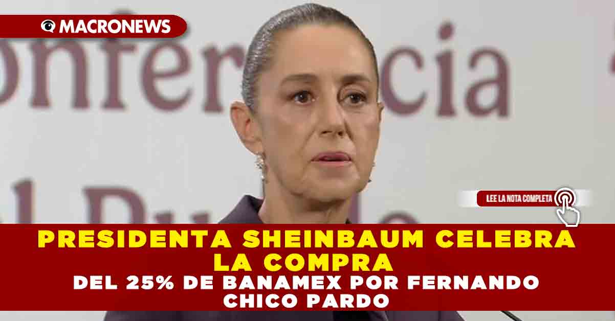 Redacción Macronews-. La presidenta Claudia Sheinbaum Pardo celebró la reciente compra del 25% de Banamex por parte del empresario mexicano Fernando Chico Pardo, a quien calificó como un inversionista de buena reputación y con un historial sólido en el sector empresarial.