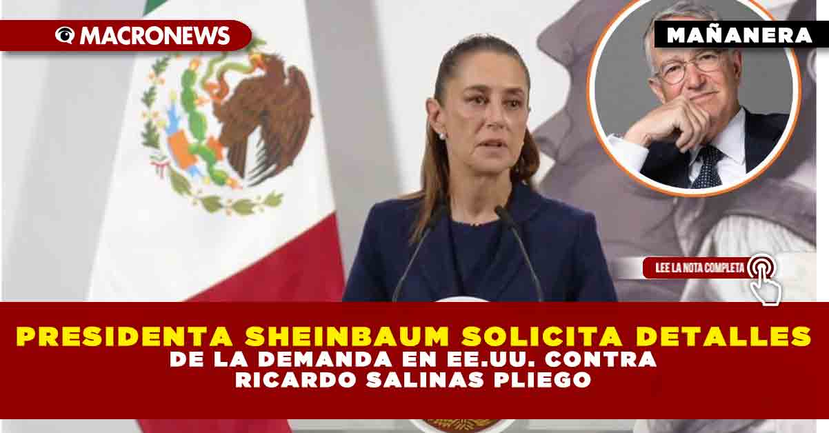 Redacción Macronews-. La presidenta de México, Claudia Sheinbaum, informó este martes que solicitó mayor información sobre la demanda presentada en Nueva York contra el empresario mexicano Ricardo Salinas Pliego, quien enfrenta un proceso legal en Estados Unidos.