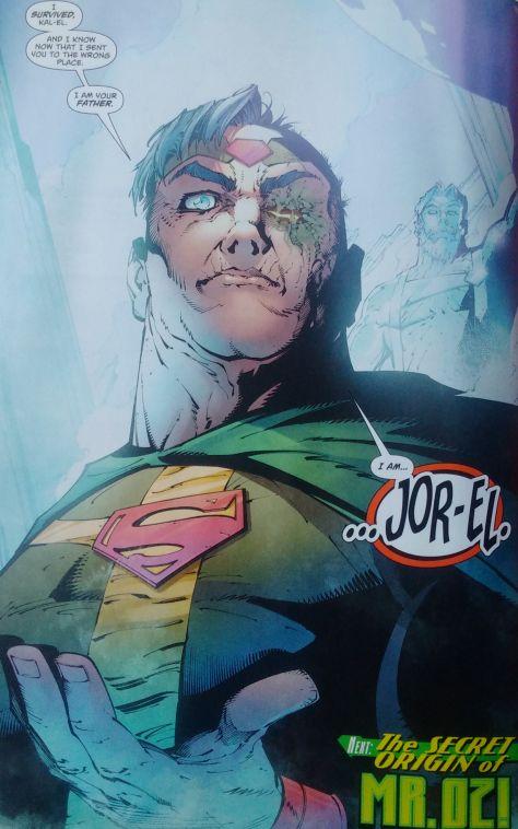 Como lo puedes ver, Jor-El logró abandonar Krypton antes de que explotara, aunque no salió ileso. Además, se reveló que él es Mr. Oz, una especie de vigilante de lo que ha sucedido con el Universo DC desde Rebirth, quien ha tomado como prisioneros a varios héroes y villanos por razones desconocidas.
