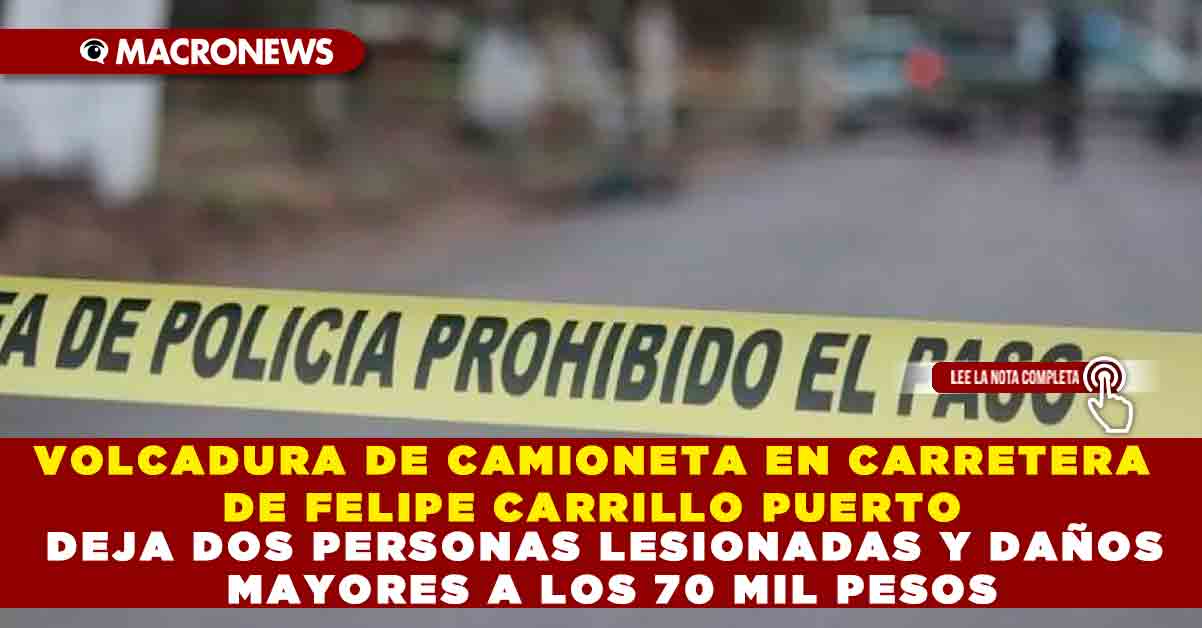 Felipe Carrillo Puerto.- Dos personas sufrieron lesiones en diferentes partes del cuerpo luego de volcarse la camioneta en la que viajaban en el tramo Felipe Carrillo Puerto- Polyuc.
