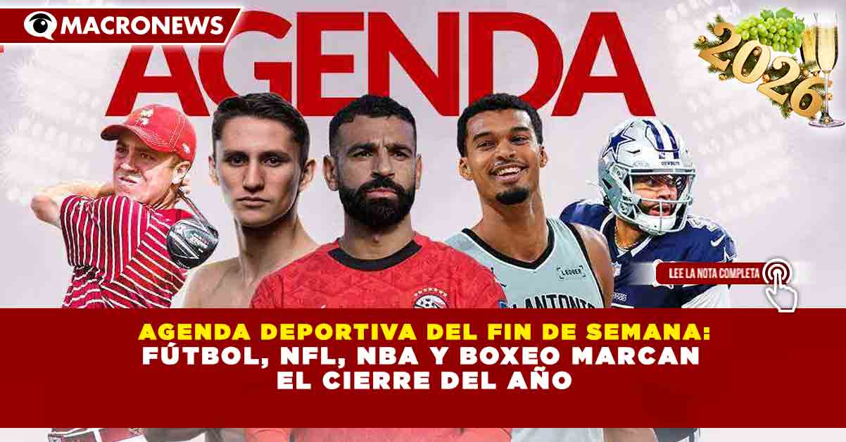 Redacción Macronews.- El 2025 entra a su recta final, pero la actividad deportiva no se detiene en este último fin de semana del año, con una amplia agenda que incluye fútbol internacional, la NFL, la NBA en jornada navideña, boxeo de campeonato y el arranque de la nueva temporada del TGL Golf.
