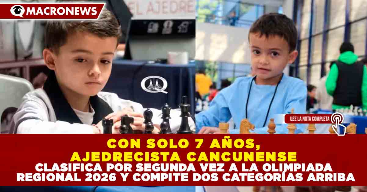 Redacción Macronews.- Con apenas siete años de edad, el ajedrecista cancunense Diego Carrasco Zanini Perles Blanco logró por segunda vez consecutiva su pase a la Olimpiada Regional 2026, consolidándose como una de las promesas más jóvenes del ajedrez en Quintana Roo y en México.