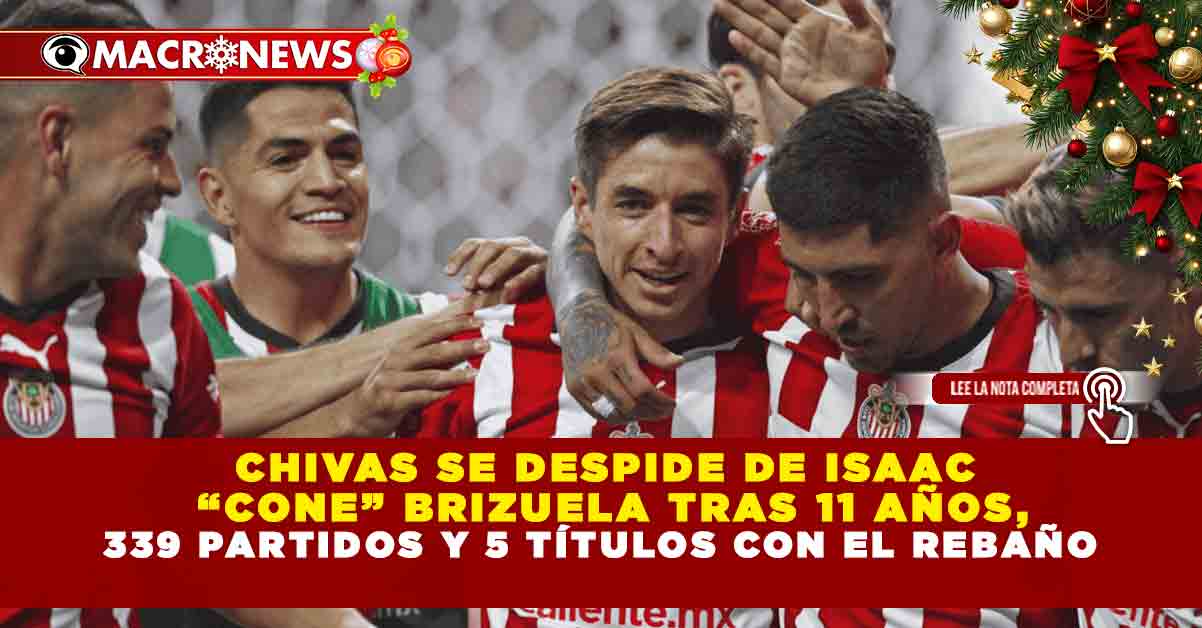 Redacción Macronews.- Los movimientos continúan en Chivas de Guadalajara y este sábado 20 de diciembre el club rojiblanco anunció de manera oficial la salida de Isaac “Cone” Brizuela, futbolista que permaneció 11 años en la institución y que formó parte de una de las etapas más exitosas del equipo, al conquistar cinco títulos oficiales.