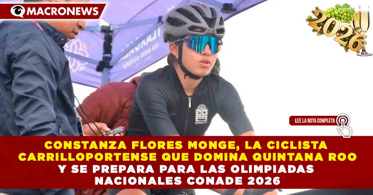 Redacción Macronews.- La joven ciclista Constanza Flores Monge, originaria de Carrillo Puerto, brilló en las pruebas estatales de ciclismo femenil de Quintana Roo, en la categoría 15–16 años, posicionándose como la mejor de la entidad y enfocando ahora su preparación hacia las Olimpiadas Nacionales CONADE 2026, programadas para marzo.