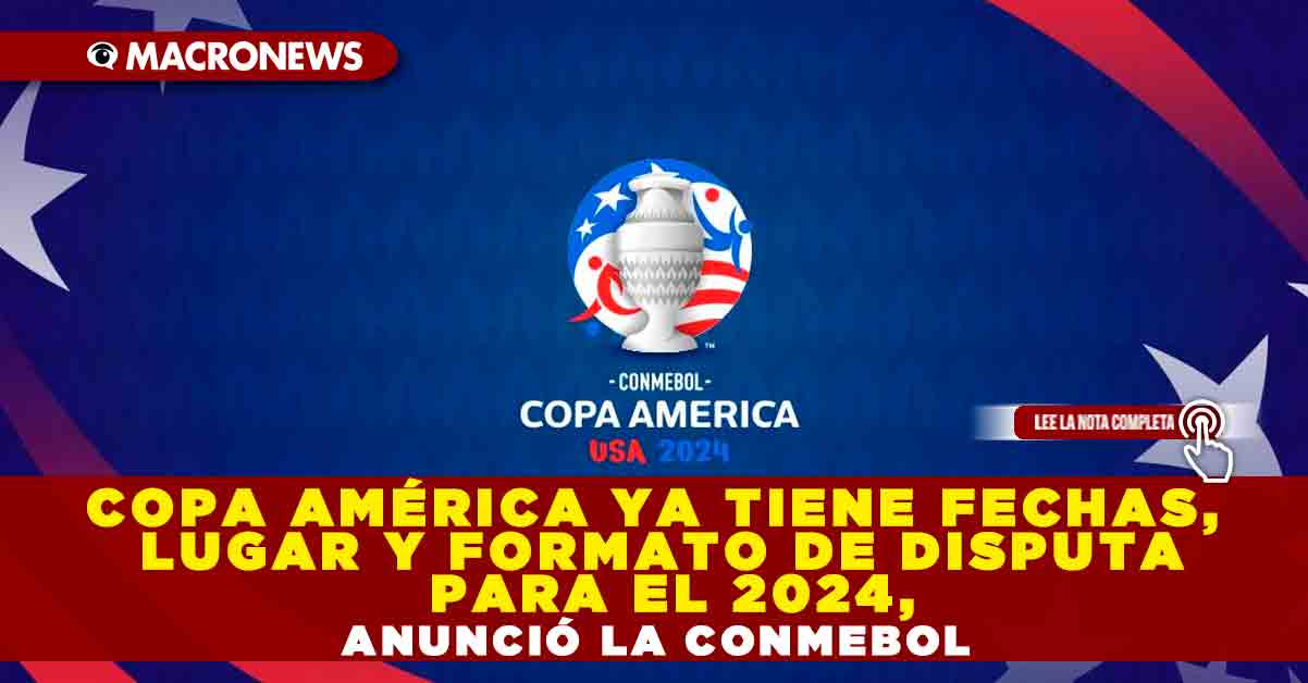 La Conmebol anunció la fecha, el lugar y el formato de disputa de la próxima Copa América que se llevará a cabo en Estados Unidos desde el 20 de junio hasta el 14 de julio de 2024. Al certamen en el que la selección argentina defenderá el título que obtuvo hace dos años en el estadio Maracaná tras vencer a Brasil en la final acudirán 16 conjuntos nacionales (máximo número que iguala al de la Copa Centenario que se desarrolló también en suelo norteamericano en 2016).