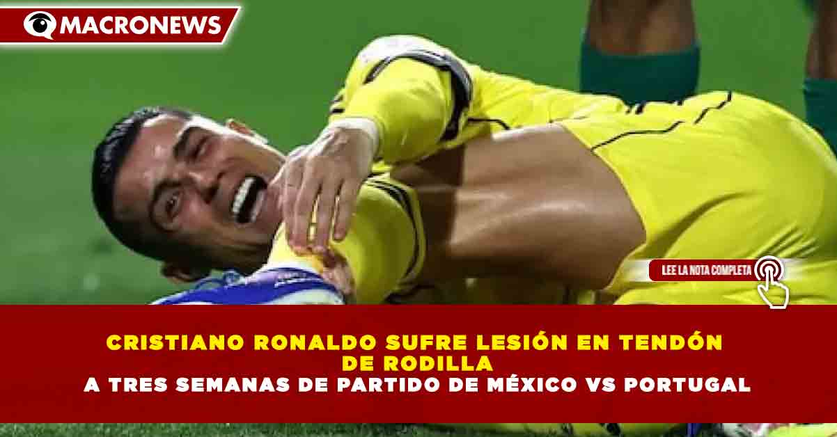 Redacción Macronews.- Al Nassr confirmó este martes 3 de marzo que Cristiano Ronaldo sufrió una lesión en el tendón de la rodilla durante el partido contra Al Fayha, situación que obligará al astro portugués a iniciar un proceso de rehabilitación y genera dudas sobre su participación en el amistoso entre México y Portugal el próximo 28 de marzo en el reinaugurado Estadio Azteca.