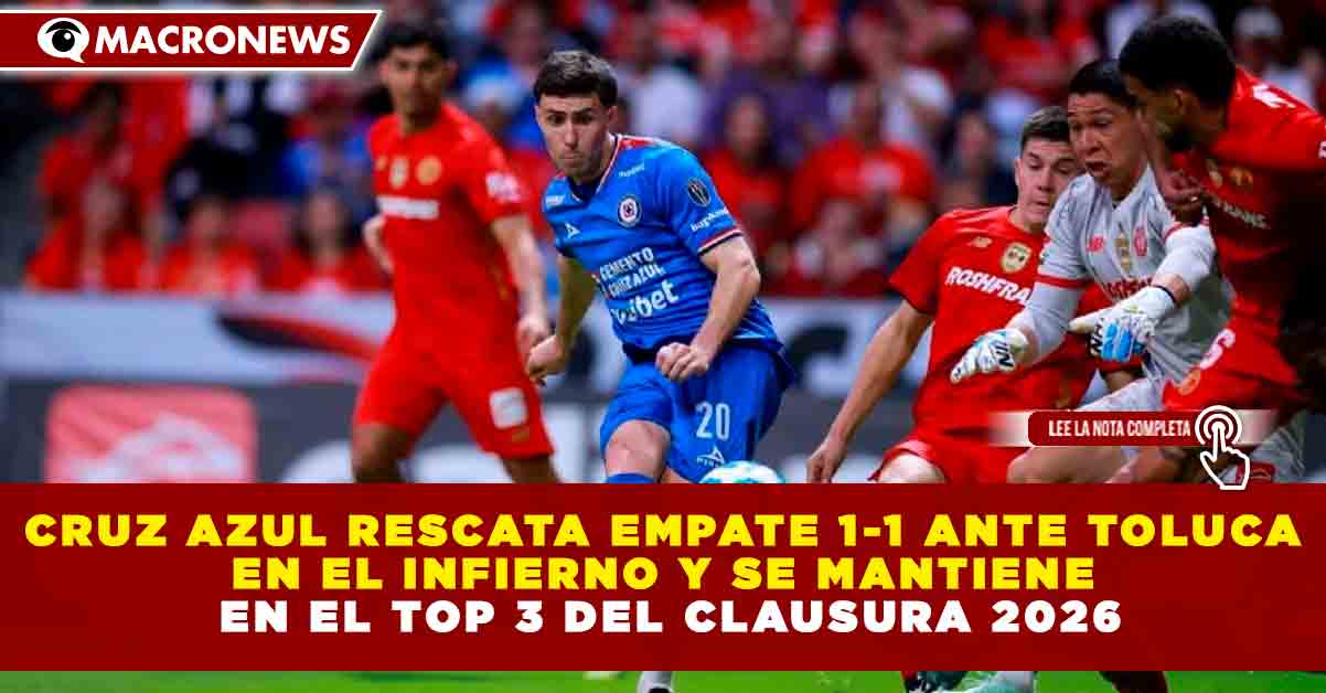 Redacción Macronews.- Cruz Azul empató 1-1 este sábado en su visita al Toluca, en partido correspondiente a la Jornada 5 del Torneo Clausura 2026 de la Liga MX, disputado en el Estadio Nemesio Diez, resultado que le permitió sumar un punto valioso y mantenerse en los primeros puestos de la tabla general.