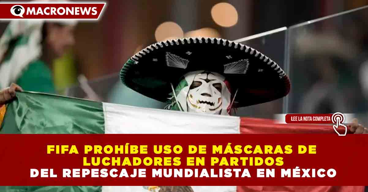 Redacción Macronews.- La FIFA anunció que durante los partidos del repechaje rumbo a la Copa del Mundo 2026 que se disputarán en México, quedará prohibido el uso de máscaras de luchadores, una tradición muy común entre los aficionados tricolores. Esta medida se aplicará tanto en el Estadio BBVA de Monterrey como en el Estadio Akron de Guadalajara, donde se jugarán los encuentros de repesca que definirán qué selecciones avanzarán hacia la máxima justa del balompié.