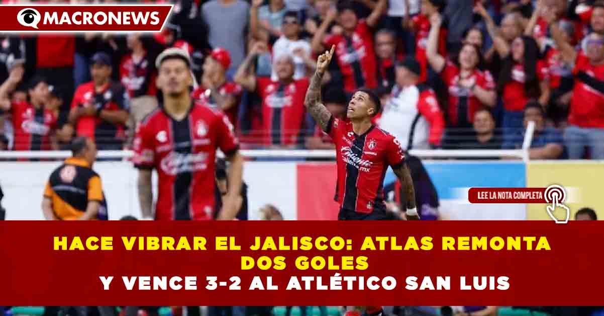 Redacción Macronews.- El Estadio Jalisco vibró este sábado con la impresionante remontada de Atlas, que superó 3-2 al Atlético San Luis en un encuentro correspondiente a la Jornada 7 del Clausura 2026.