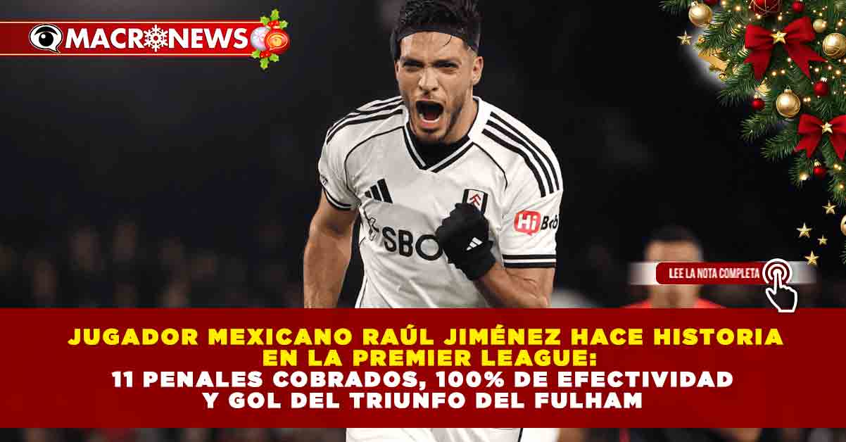 Redacción Macronews.- En la jornada 17 de la Premier League, el Fulham se impuso 1-0 al Nottingham Forest en el Craven Cottage gracias a un gol de penal de Raúl Jiménez, quien no solo aseguró los tres puntos para su equipo, sino que además hizo historia al alcanzar 11 penales anotados en 11 intentos, igualando el récord de 100% de efectividad del marfileño Yaya Touré en el futbol inglés.