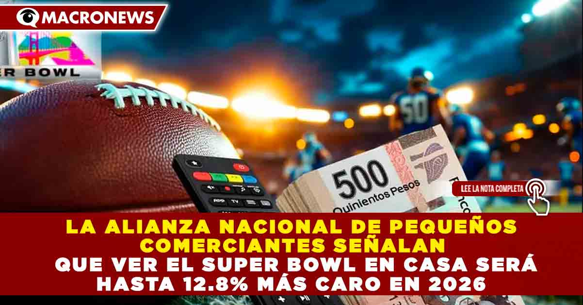 Redacción Macronews.- Ver el Super Bowl LX 2026 desde casa será más costoso este año, ya que organizar una reunión para 10 personas con un menú básico de botanas y bebidas puede representar un gasto de hasta 2 mil 161 pesos, informó la Alianza Nacional de Pequeños Comerciantes (ANPEC). La estimación corresponde a productos típicos de convivencia como hot dogs, papas, totopos con guacamole, cervezas y refrescos.