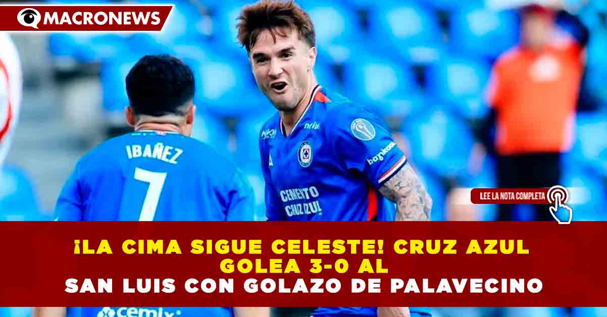 Redacción Macronews.- Cruz Azul reafirmó su liderato en la Liga MX al vencer 3-0 al San Luis en el estadio Cuauhtémoc, con un gol de antología de Agustín Palavecino que dejó a todos con la boca abierta. Con esta victoria, La Máquina llegó a 25 puntos y se mantiene como líder solitario del certamen.