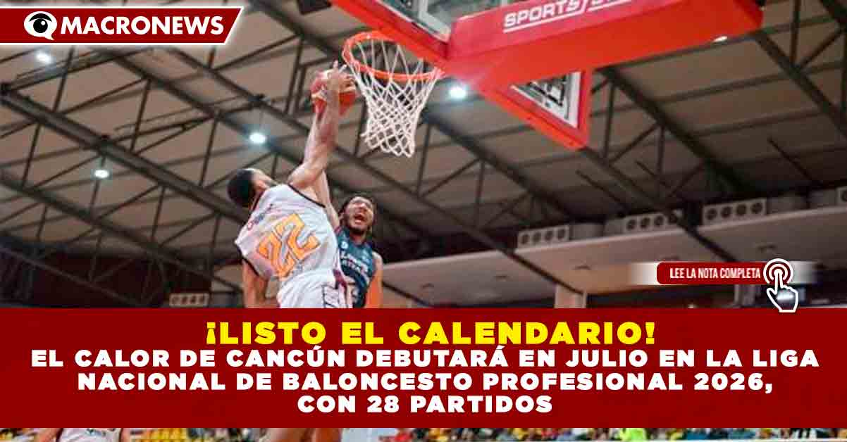 Redacción Macronews.- El equipo El Calor de Cancún ya conoce su calendario oficial para la Temporada 2026 de la Liga Nacional de Baloncesto Profesional (LNBP), donde disputará un total de 28 jornadas en busca de consolidarse como protagonista del baloncesto mexicano.