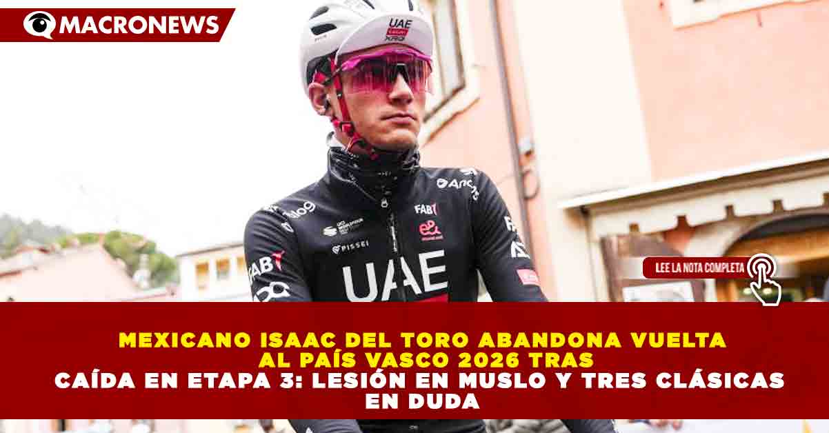Redacción Macronews.- El ciclista mexicano Isaac del Toro encendió las alarmas tras abandonar la Vuelta al País Vasco 2026 luego de sufrir una caída durante la etapa 3, que le provocó una rotura en el músculo del muslo derecho, además de múltiples abrasiones.