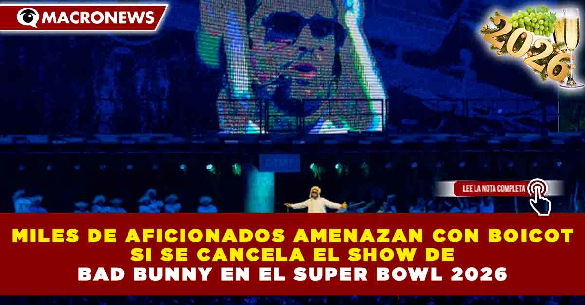 Redacción Macronews.- Miles de aficionados en Estados Unidos manifestaron su rechazo ante la posible cancelación del show de Bad Bunny en el medio tiempo del Super Bowl 2026, advirtiendo que podrían realizar boicots si se concreta la decisión.