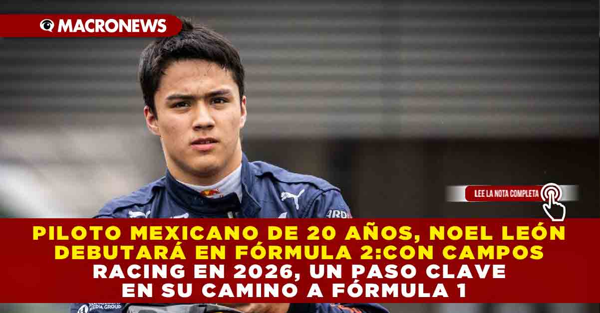 Redacción Macronews.- El mexicano Noel León, de 20 años, ha sido confirmado por el equipo español Campos Racing para participar en la temporada 2026 de la FIA Formula 2, lo que marca un ascenso de categoría tras lograr seis podios y un 10º lugar en su temporada de debut en FIA Formula 3.
