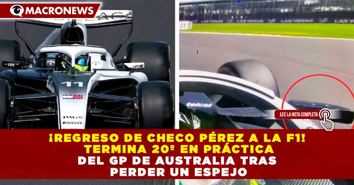 Redacción Macronews.- El piloto mexicano Sergio Pérez tuvo su regreso oficial a la Fórmula 1 durante la primera práctica del Gran Premio de Australia, donde finalizó en la vigésima posición, en una sesión marcada por algunos incidentes en pista, incluyendo el desprendimiento del espejo derecho de su monoplaza.