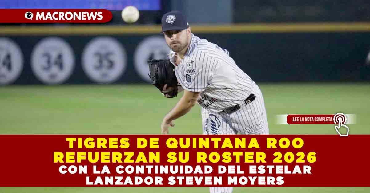 Redacción Macronews | Por Santiago Ramírez.- En el marco del impulso al deporte que respalda la gobernadora Mara Lezama, los Tigres de Quintana Roo continúan su reestructuración rumbo a la temporada 2026 de la Liga Mexicana de Beisbol, anunciando la permanencia del destacado lanzador zurdo Steven Moyers, quien se perfila como pieza fundamental en la rotación bengalí.
