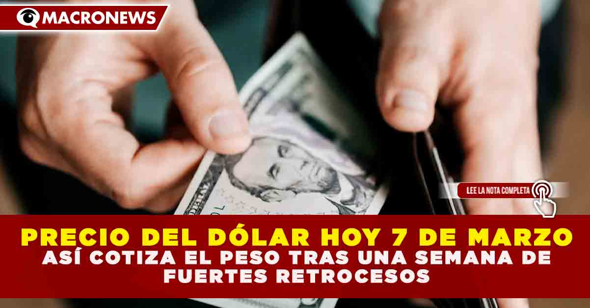 REDACCIÓN MACRONEWS.- El peso mexicano cierra una semana de intensas turbulencias financieras con una depreciación acumulada del 3.5% frente al dólar estadounidense, situando el tipo de cambio en niveles de alerta este sábado 7 de marzo de 2026. La divisa nacional concluyó la jornada previa cerca de las 17.81 unidades, tras haber rozado un máximo intradía de 17.91 pesos, impactada por una combinación de factores geopolíticos y datos económicos desfavorables en Estados Unidos que han empujado a los inversionistas hacia activos de refugio.
