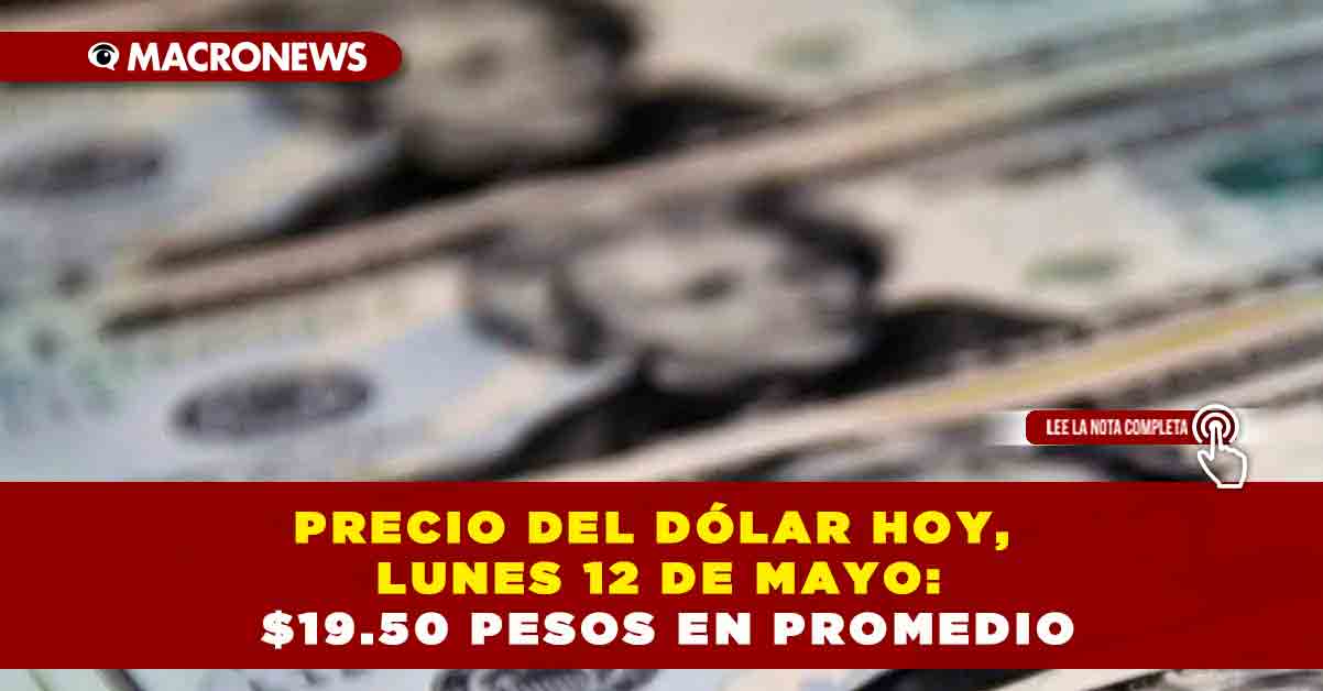 Este lunes 12 de mayo de 2025, el tipo de cambio promedio del dólar en México es de $19.5028 pesos por dólar, con una ligera apreciación del 0.23% respecto al día anterior.