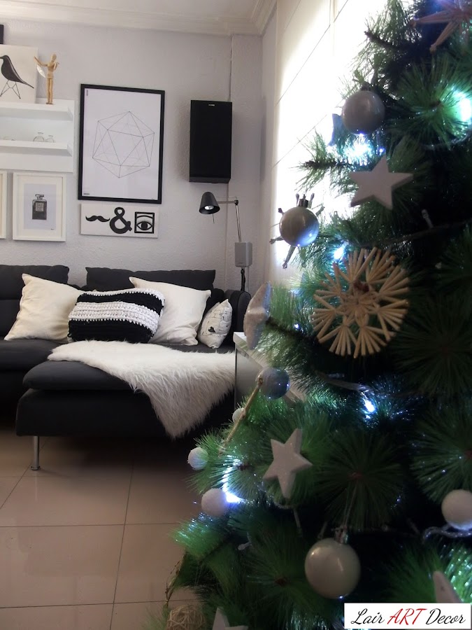 Este año la tendencia como ya os comentaba en 14 arboles de navidad para estas fiestas. ¡Triunfarás! llega con el arbol tradicional decorado en tonos naturales y blancos brillantes y es así como he decorado mi arbol.