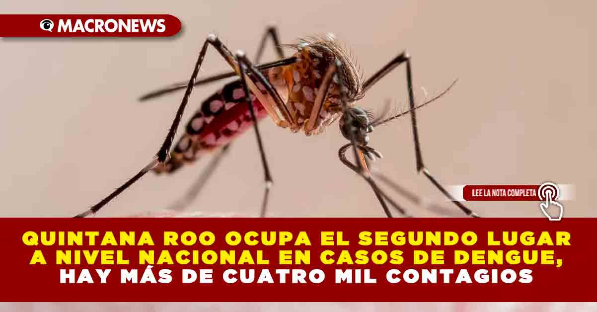 La Secretaría de Salud del Gobierno de México informó que Quintana Roo superó la barrera de los 4 mil casos de dengue y se encuentra en segundo lugar en casos por cada 100 mil habitantes y en tercera posición por número.